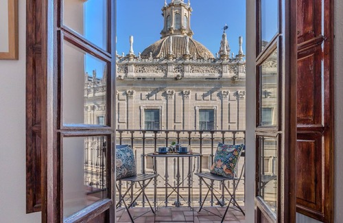 Located on the Avenida de la Constitución on a 5th floor, this spacious flat for 2 people has it all: space, light and the best views of the Cathedral of Seville.