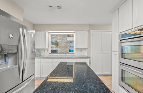 Lake Texoma is your new go-to destination for a great week out of town. This home offers a massive wall of windows that looks over the top of the trees in this lakeside community. The 1st floor is a popular place to mingle, offering a pool table and expansive living room. The Basement is where the fun happens with a ping pong table, air hockey table, giant jenga, giant connect 4, Video games and a pub table. Walk out to grill on the upper patio or walk out the basement to sit by the fire. Enjoy flat screen WiFi enabled TVS in the Man Cave in the Basement, the main floor living room, and in the Master Bedroom.