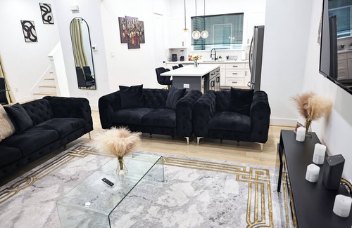 Welcome to your private group-friendly retreat in Downtown Houston. This one-of-a-kind listing combines two modern, side-by-side 3-bedroom townhomes into a 6-bedroom luxury stay — located inside a gated, safe, and quiet neighborhood, just minutes from major attractions, stadiums, and both Houston airports.