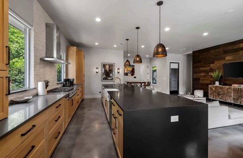 A stunning 2-structure Austin compound featuring a Main house and Guest House. Modern luxury, exceptional finishes, gourmet kitchen, NEW sauna, NEW hot tub, fire pit, and a ping pong room. Nestled in the sought-after South Lamar neighborhood, this home is close to local shopping, restaurants, and bars. Seven rooms with seven beds and 1 sofa bed make this home a perfect spot for accommodating large groups and families of 16!