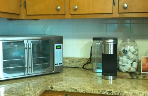 Going to Granny's - BUT UPDATED! Sit by the gas fireplace, with your feet up, and enjoy cooking in the well stocked kitchen with newer appliances, including a new electric range. Freshly painted kitchen, living room, and dining area. FAMILY-FRIENDLY! Full size crib as well as books and toys for all ages. Master bedroom has en-suite with newly refinished master shower and king size bed. Guest bedroom has a queen size bed and 3rd bedroom/office has single daybed with single trundle bed. Second bathroom has tub shower combo. New carpets in all bedrooms. 1000 square foot 2nd floor has full-size crib, full size bed, dresser, desk and sitting area with kid friendly table and chairs, books, and toys. A backyard play-set has been added for children 10 and under. The double decks overlook a large fenced backyard.