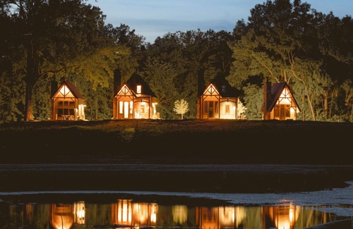 Discover peace in nature in this enchanting timber frame cabin surrounded by mature oak trees and peaceful lake views. 400 acres of hiking trails, two stocked lakes, and nearby attractions, this cabin will take your next vacation to a new level. Our two-bedroom cabin has the amenities you need including High Speed Internet and a wood burning fireplace. The Cabin comes equipped with a fully stocked kitchen. LEASHED PETS WELCOME