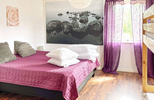 In this lovely villa, the whole family can find a calm and peaceful environment for those who want to relax in the middle of the world heritage High Coast. The farm is great for activities and relaxation, there are rabbits and a lovely environment for the whole family. Everyone is welcome here, big and small and even your four-legged friends. The place is a perfect starting point for discovering the beautiful high coast, or the opportunity to enjoy a lovely barbecue in the garden and then sleep really well. The house has two floors, social areas on the ground floor such as kitchen, dining room, living room, glazed conservatory and a large terrace with outdoor furniture and barbecue. Upstairs there is a double bed, a bunk bed, three single beds and a WC. The large bathroom with shower and washing machine is on the entrance floor. The house next door is the owner of the farm and owns the land down to a fishing lake a few minutes away, where you as guests are welcome to try your luck at fishing. There are several places with fishing water for those who are interested: approx. 30 – 60 minutes by car and then a fishing license is required. As guests, you can move freely on the grassy areas of the neighboring farm where the hostess lives. Höga kusten is a coastal area in Ångermanland. Since the last ice age, a land elevation of almost 300 meters has made the landscape special, with high cliffs among other things. You can also get to the top with the Skuleberget cable car. In summer, you can ride the cable car up to the top and walk around and enjoy the view. The trip takes about 8–15 minutes up to the top. There is also the Skule Naturscen, where every summer many concerts are arranged, including the Skule Festival. At the foot of the Skuldbergets lies Naturum Höga Kusten, here an exciting and colorful exhibition of the geological processes that have taken place in the area is shown. Nordingrå parish, 20 minutes away by car, is located right in the heart of the High Coast. Many go to Nordingrå to find peace, whether it's sunbathing on Rotsidan's warm outcrops, hiking up one of the magnificent mountain peaks or enjoying a good dinner is entirely up to everyone. Nordingrå is a cultural mecca with studios and art exhibitions, as well as cozy cafes and museums. 2 miles away is Kramfors on the shore of the Ångermanälven river, here you can do your everyday shopping and shopping, here you will find both the charming small-town feel and a magnificent nature, archipelago and boating. Here you can enjoy good food and drink in Kramfors. The nearest airport is Höga kusten with flight connections to Arlanda. Bed linen is available for rent, contact the hostess. Welcome to the fantastic High Coast for tranquility and experiences.