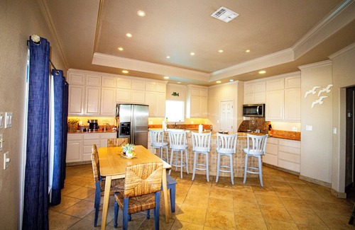 Nestled on the serene south end of the harbor, our expansive 4-bedroom, 3-bath condo offers the perfect blend of spaciousness and warmth, making it an ideal choice for families and groups looking to experience the beauty of Port Mansfield. Upstairs accommodations include a master bedroom with a queen bed & an en-suite bathroom and another bathroom and bedroom with two queen beds and a twin bed. Downstairs accommodations include a bunk room with six beds, a lounge area with two couches and a bathroom. Our condo effortlessly welcomes up to 12 guests, ensuring a comfortable stay for everyone.