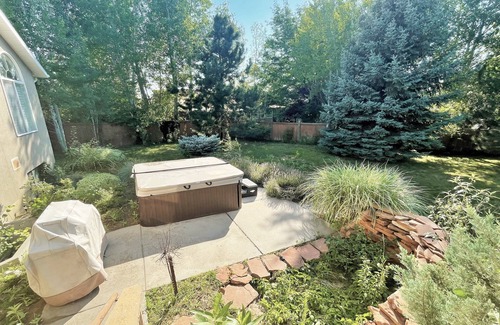 There is a 2-car garage, along with plenty of space for 4 more cars in the driveway. Local laws require that you park in the garage & driveway, so please use those spaces. The private back yard is fully-fenced and has a deck and a large hot tub. Dogs are welcome but require a small fee. No cats allowed.