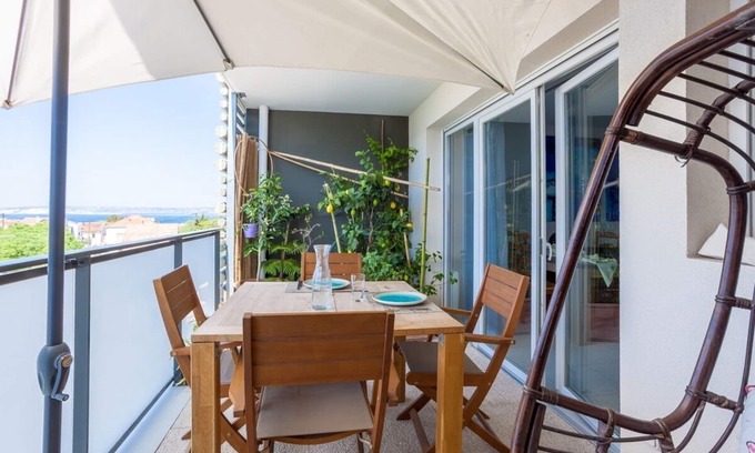 The apartment is 33m2 and has a 12m2 terrace with views over the sea.