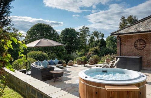 Outside there are four sun terraces all facing south west which offer different areas from quiet reflections around a water feature to the large family terrace with hot tub, outdoor sofas, fire pit and BBQ. There is a terrace directly outside the kitchen door with a table and chairs for up to 10. Outside the dining room is a small terrace for sundowners.