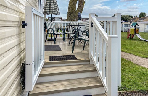 A beautiful two bedroomed van situated on the popular holiday park in Sandown on the Isle of Wight.. 3 steps to entrance.