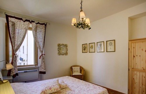 Quiet apartment, renovated with elegance and efficiency, located under the walls of Capalbio. The large and bright living room with three windows opens onto a terrace overlooking the valley, with a 360 ° sea view. A double bedroom, a bedroom with two single beds and a balcony. A double bedroom in the mezzanine. Two bathrooms. Equipped with washing machine, dishwasher, oven, hairdryer. A free parking space. Detached garden. During the wild boar festival, historical event of the village of Capalbio held the second week of September, there may be inconvenience due to noise