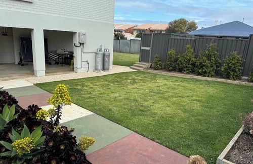 Located on the Port Elliot headland between Horseshoe Bay and Boomer beach. Walking distance to both beaches plus the Port Elliot shopping precinct, supermarket, coffee shop's and the 2 pubs. This cosy beach house is suitable for one family only. It is two stories with kitchen, living, dining and master bedroom/ensuite upstairs. There are glimpses of Knights Beach and Green Bay from the kitchen and dining room. This space is light filled and a beautiful space to relax in. Downstairs is the second bedroom with two sets of bunks, second bathroom and laundry. We purchased this house 2 years ago and have done some small refurbishments. It is very basic but cosy and clean. It has great A/C and heating upstairs. It has a large, private, grass filled yard with fire pit, table tennis table, hammock and BBQ. There is off street parking for three cars. A haven in the heart of Port Elliot and the perfect spot for a family summer holiday. No pets are allowed at this property.