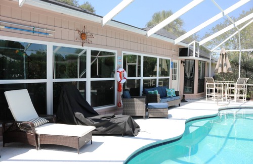 Home in Jacksonville, Mandarin Area. Come relax by your own private unheated pool or rack up a game of pool. Spacious home to spread out in. 3 king beds and 1 queen bed along with 2 roll-away beds. Smart TVs throughout the home. Brand new Southwest Furniture and Decor to bring the colors of the Southwest to the Southeast. Close to shopping and restaurants. 2.5 hours to Disneyworld, 15 min to the beach and St Augustine and 30 min to Amelia Island. Come relax, unwind and have some fun in the sun!