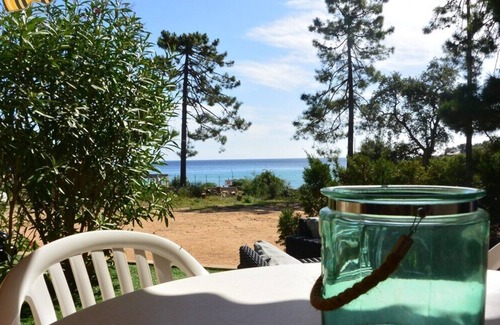 Terrace (covered) facing the sea: garden furniture, barbecue.