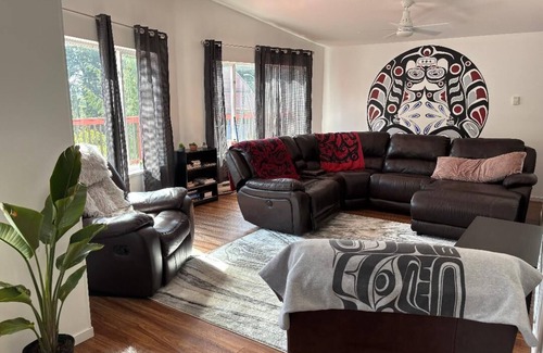 We are thrilled to welcome you to our home on the Namgis First Nation territory in Alert Bay. The space is private, pet friendly, and perfect for anyone on vacation or here for work/business.The home is very spacious and beautifully decorated with original First Nations artwork designed by your host, Donald Ozzie Wadhams, a proud Kwakwa̱ka̱ʼwakw artist.