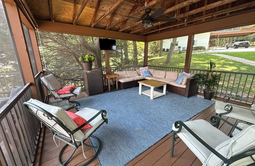 Original lake cottage with great views, sloping lot and 2 screened in porches . Large deck and screened porch on dock that was just rebuilt 2022! All bedrooms downstairs along with one bathroom. Kitchen, den, screened in porch, and bathroom on second floor. Public boat ramp is right around the corner! This is not a fancy home but a quaint summer lake cottage that we just love!