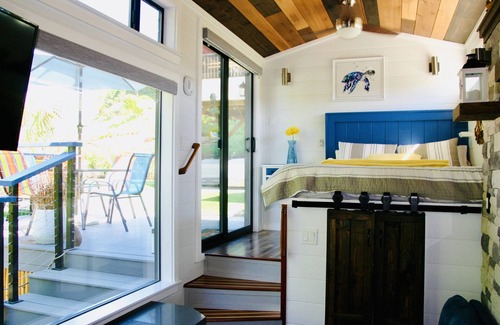 This modern, fully customized Tiny House is a unique adult getaway that will exceed your expectations. Walk down a sloped pathway, unattached from our main house, to your own private paradise. (Not suitable for a wheelchair or for someone with challenging mobility issues)