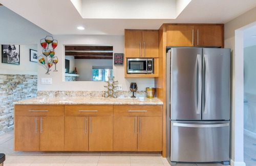Our beautiful mid-century modern house is completely renovated and fully furnished and comes with the amenities and comforts you would need on a vacation. There are 4 bedrooms and 3 bathrooms. There is a colorful living room, spacious game room, open dining room, and beautiful kitchen. The private backyard is surrounded by tall hedges, so you can enjoy the spa, pool, fire pit, and grill in peace.
