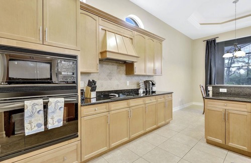 Prepare for paradise when you enter this home with a spacious lanai and built in grill to a fully equipped chef's kitchen and an open floor plan living space, you may never want to leave! The master suite boasts a king size bed on top of plush carpet and multiple oversize windows overlooking the pool area with a private bathroom ensuite.