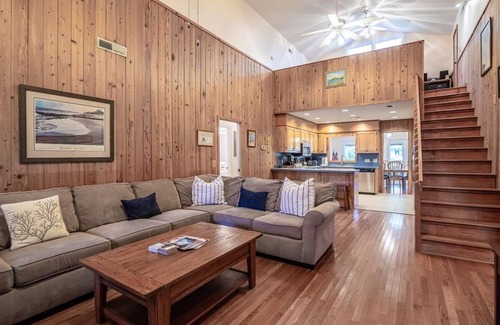 This 4 Bedroom 3 Bath beach house is situated in North Litchfield and just a few minutes walk from the beautiful white sandy beaches of the Atlantic Ocean. The beach house boasts a spacious living room with a large plush corner couch, fireplace, and flatscreen tv – perfect for resting up after a long day on the beach, golfing or shopping around town. Adjacent to the living room is a fully equipped kitchen and formal dining room with french doors to the large outdoor deck.