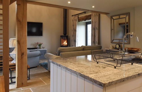 A stunning barn conversion with hot tub, great views and a very comfy kingsize bed. Perfect for a romantic break away.. 1 step to entrance.