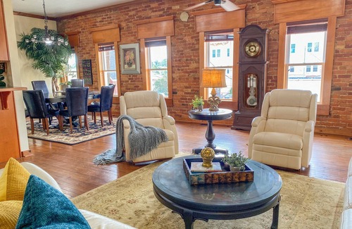 Main Street Loft is the most unique lodging experience in the beautiful city of Enterprise, Alabama. Centrally located in the vibrant downtown, you will enjoy shopping, dining, & entertainment. Our upstairs apartment is located in one of the city's prized historic buildings. Our numerous modern amenities perfectly compliment the loft's beautifully preserved architectural details like original fireplaces, exposed brick walls, wrought iron, and original tongue-and-groove ceilings and floors.