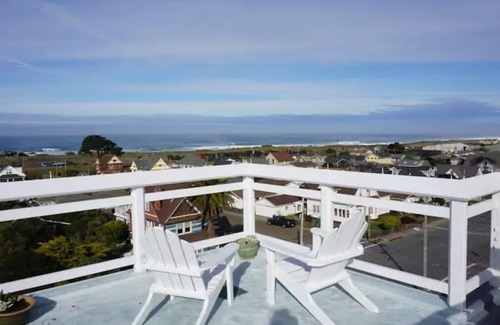 The room, located on the 3rd story, features wireless internet (WiFi), Ocean View, Queen Sized Bed, Roof-top Deck Access, Gas Fireplace, USB phone charging station, microwave, small fridge, instant hot water kettle, tea & VERVE Pour Over Coffee, Off-Street Parking. Check-in time 3pm.