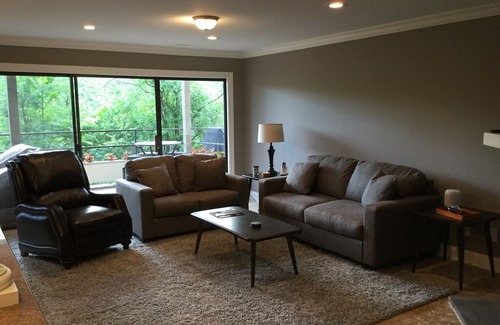 Remodeled 2 bedroom 2 bath privately owned condominium near the Abbey Marina in the heart of Fontana. The location is within a 10 minute walk to everything you need to enjoy your vacation on Lake Geneva including The Abbey Resort & Spa, Gordy’s Boat House & Surf Shack restaurants, Chuck’s, Gordy’s boat and SUP rentals, Jerry’s Marine jetski and pontoon rentals, the lake hiking path, and the Fontana town beach. The condominium has recently been remodeled with all new appliances and furnishings for your comfort! No detail has been over looked in order to maximize your families enjoyment including a full supply of board games that can be played on the large private patio while enjoying the cool summer breezes. The private and quiet patio faces the river feeding into the Lake and has comfortable furnishing to just lounge around or bbq on the new Weber grill. We also have the unit professionally cleaned by an outside service between each stay for the best possible guest experience. The master bedroom with memory foam mattress has its own private bath, flat screen TV, and Apple HomePod. The second bedroom is equipped with 2 sets of bunk beds also with memory foam mattresse along with an Xbox for the kids and flat screen TV. The main living area is fully furnished with a large flat screen TV above the gas fireplace and an apple HomePod. Also provided are 6 plush beach towels and an assortment of outdoor games. There is also an in unit washer and dryer. The complex has 2 private pools for your enjoyment and we provide 6 passes to the Fontana public beach with its sandy beach, swim platforms, and volleyball court. This unit is designed primarily for families, girls weekend, and quiet small gatherings for up to 6 people. No pets or parties are permitted.