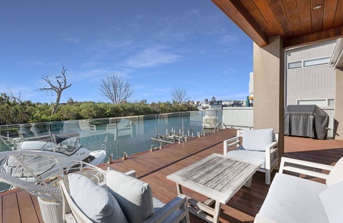 Accommodating up to 12 guests, the spacious layout features four inviting bedrooms, ensuring ample space for family and friends. The open-plan living areas seamlessly connect to a sunlit deck, where you can enjoy serene water views and the gentle breeze. The modern kitchen and comfortable living spaces make entertaining a breeze.