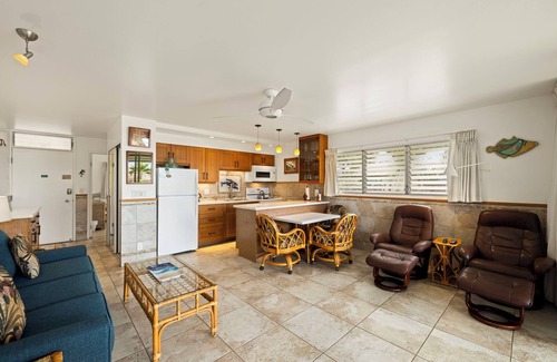 Very important, Kihei Kai Nani is HOTEL ZONED, and not affected by ongoing Maui Transient accommodation issues, ours is a one-bedroom condo, on the top corner (2nd floor) of building #3, which is the second floor of a concrete building. The unit has a full kitchen and amenities. Our Lanai is a good size with ocean and beach views and there is a nice table and chairs on the lanai where we eat most meals. We have recently fully renovated our condo (down to the studs in every room) which means it is brand new. It is furnished with high-end appliances and furniture etc. Our bathroom is completely tiled with a very spacious shower, and all new towels etc. Kamaole beach II is directly in front of us, about 100 yds from the door. The pool and laundry room are about 100 ft. away. Restaurants and shops are 1/2 a block away. Our complex, Kihei Kai Nani, was one of the first two Kihei resorts built in the seventies. They could have chosen any of the beaches for miles around, but they chose Kamaole II, what more to say? Actually, I should comment on our decision to not install a dishwasher, washer and dryer, we have been visiting our first condo in Kihei Kai Nani for about 35 years now and have never felt the need for such appliances. Two people can surely wash dishes in a large double sink, and a washer and dryer take up a lot of space and are very expensive to operate with Maui electricity costs. They give off heat, they are noisy, and they can leak and need repairs. When the laundry room is steps away, beside the pool where you often meet other vacationers, it is a no brainer. In our opinion, A/C in Hawaii is generally not necessary, but we have installed quality units in both rooms, for those that desire it, I have owned my 1st condo in Kihei Kai Nani for 35 years and have never lost a guest due to not having the appliances aforementioned. In January/25 we purchased new queen sofa bed and mattress. Finally, if you are looking for the cheapest deal, in KKN, then ours is not it, but I do believe for a few dollars more, we will give you the best deal for your money,