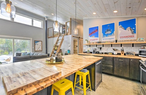 Transport yourself to a stunning snow globe when you stay at this Wilmington, New York, vacation rental. This upscale 4-bedroom, 2-bathroom cabin is the ideal place to bring the family when you’re looking for a relaxing outdoor adventure. This Adirondack vacation rental offers luxury amenities perfect for winter, including radiant-heated floors, a barrel sauna, ski storage, and a cozy wood-burning stove to warm up in front of in after a day of skiing at Whiteface Mountain or Mt Pisgah Ski Area.