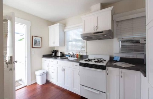Adorable Beach Cottage, lovingly decorated, 1.5 Blocks from the beach, in the Venice Canal neighborhood. This cottage is not directly on the canal; it's behind the larger cottage, which is on the water. Pictures show you the canal neighborhood. Includes 2 boats, laundry, parking, beach chairs & beach towels, welcome coffee, HDTV, WiFi full kitchen, sleeps 4; has 1 Queen bed+ 2 Twin beds. It's a studio so all sleep in the same room. It's small but adorable and in a great location.