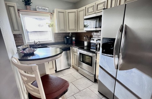 This cute 1940’s cottage has been completely redone, professionally decorated and is ready to be a home away from home. It is fully stocked and furnished with brand new mattresses and linens and new kitchen items. It has two bedrooms, one bathroom and living room and kitchen. The backyard is wonderful with a fire pit and outdoor entertainment area. The home is very private and in a great area that is convenient to most everything. The photos don’t do it justice, it really has a great vibe and is so cozy! From the black out draperies to the adorable cafe table…we know this cottage will provide an enjoyable stay!