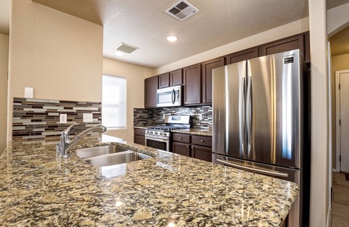 Stay in this cozy 3 bedroom home where you can feel at home away from home. In January 2019, I updated my home with new kitchen appliances & granite countertops, new carpet, painted the interior, added a new flat screen tv to the Master Bedroom, new BBQ grill and added a fence for an enclosed backyard. This home features free wi-fi, split bedroom plan, washer/dryer and access to 1 car garage with opener. It's conveniently located off the Sonoma Ranch exit North of Hwy 70 so it has easy access for anyone who needs temporary housing who is working at WSMR, NASA or Mountain View Hospital. The house sits on a corner lot with a fenced yard (dogs welcome) and across the street from a neighborhood park. You can enjoy the front courtyard while you BBQ on the new gas grill or sit on the back patio drinking your coffee and watching the sunset on the Organ Mountains.