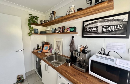 Enjoy our selection of T2 teas, brew an espresso or pop your favourite bottle of bubbles. The recently renovated kitchenette comes with all the essentials you need to enjoy a relaxing stay; including a coffee machine, mini fridge, microwave, kettle, sandwich press and toaster. An electric wok and slow cooker are available on request.