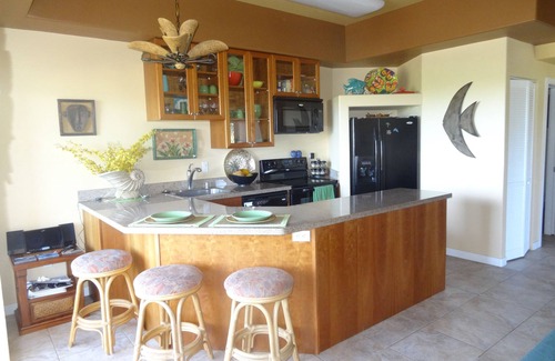The condo is very well appointed with all the comforts of home. As you sit on the lanai enjoying your ocean view, you will be mesmerized by the singing tropical birds. Feel the gentle trade winds and watch the palm trees sway. Take a breath of the fresh ocean air, you truly are in paradise.