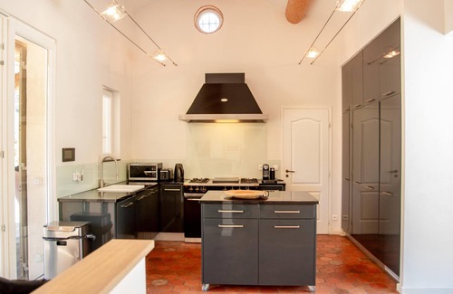 This villa with green, enclosed garden and large pool exudes pure tranquillity. The spacious, bright living room with high beamed ceilings and luxurious kitchen invites you to enjoy. Dine romantically on the decking terrace at the front, while the pool terrace is ideal on sunny days. Enjoy a game of petanque or tennis and a carefree night's sleep in one of the comfortable bedrooms, one of which is located on the mezzanine. Particularly cosy!