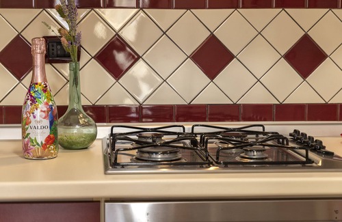 • a living area furnished in a modern style, with two comfortable sofas which, if necessary, can be transformed into two French double beds equipped with a standard mattress and an additional 7 cm high memory foam topper. The living room also offers air conditioning, a 55-inch smart TV with Netflix, a pellet stove for your winter stays;