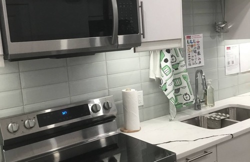 ✔ Stainless Steel Appliances – full-size fridge, oven/stove, microwave, and dishwasher