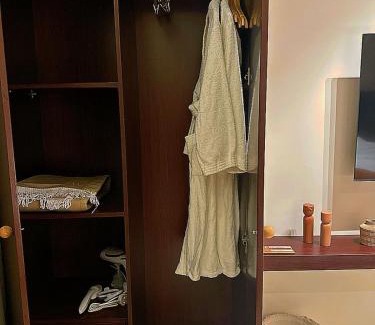 Food & DrinkTea/Coffee maker, Bottle of waterBathroomBathtub or shower, Toothbrush, Private bathroom, Slippers, Toilet paper, Shampoo, Free toiletries, Hairdryer, Towels, Walk-in shower, Conditioner, Shower, Toilet, Body soap, Bathrobe, BidetMedia & TechnologyTV, Satellite channels, Flat-screen TV, Streaming service (like Netflix)GeneralTile/Marble floor, Iron, Air conditioning, Smoke Alarm, Lockers, Fire extinguisher, Trash cans, Carbon monoxide detectorKitchenCleaning products, Coffee machine, Wine glasses, Dining table, Toaster, Kitchen, Refrigerator, Kitchenette, Stovetop, Kitchenware, Electric kettle, MicrowaveLiving AreaSitting area, Dining areaBedroomLinens, Wardrobe or closetAccessibilityRoll-in shower, Upper floors accessible by elevator, Accessible by elevator, Hearing accessible, Entire unit wheelchair accessibleBuilding CharacteristicsPrivate apartment in buildingRoom AmenitiesHypoallergenic pillowPhysical distancingSingle-room AC for guest accommodationCleanliness & disinfectionHand sanitizer |