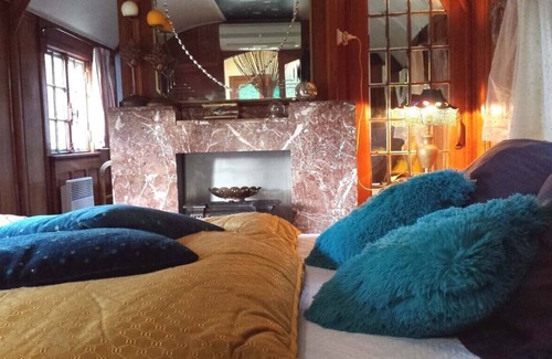 Fairground trailer carefully renovated for 2 people: bedroom (2 single beds or a large double bed), bathroom with bathtub and toilet, small kitchenette, reversible air conditioning.