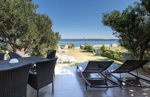 Spend a wonderful holiday right on the beach on the island of Paman, also known as the "Gateway to the Kornati Islands". With its exceptional location by the sea, this holiday apartment stands out from the crowd. You can access the pebble beach directly from the garden, where you can enjoy the beautiful sunrise. The sea is crystal clear and suitable for swimming and diving. This ground floor flat is air-conditioned and consists of a fully equipped kitchen with living room, two bedrooms, bathroom and separate toilet and a beautiful terrace with sea views. Here you can start the day with a cup of coffee or end it with a glass of wine.