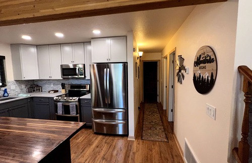 This newly remodeled fully accommodating cabin has it all. Sitting on over an acre of property and Backing up to National Forrest this gorgeous cabin has all the amenities as home. From BBQ, Traeger Smoker, Keurig, Direct TV, Video Games, Black Jack & Roulette Table, Wood Burning Fireplace, and so much more. The kitchen is fully stocked with all your cooking necessities and utensils. Located in the beautiful Community of Clear Creek Pines, just 2.5 hours from the Phoenix Area. the cabin is a 10 minute drive to the Happy Jack Lodge. Pine & Strawberry are 30-40 minutes away for a nice day trip into town to visit local shops, restaurants and bars. Bring your toys for some of the best outdoor trails and exploring Arizona has to offer. Explore some of the nearby lakes, Blue Ridge reservoir and countless sites and adventures in the Happy Jack Area. Take a trip to Winslow to 'Stand on The Corner'. Relax & enjoy watching the Elk & Deer herds pass from 1 of the 3 massive decks both in front and back of cabin. Take a hike into National Forrest leaving directly from the property. Hang out in the loft and play Card Games on the Gaming table or try your luck at Pac Man or Frogger! Over 50 board games are stocked for you as well. This Cabin has it all and was designed and decorated with every thought of relaxing in mind.