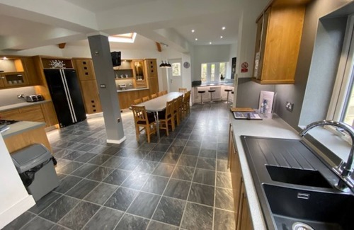 Set in the Heart of the old market town of Holmfirth, famous for the home of the popular TV Series 'Last Of The Summer Wine', the house is only a 5 minute walk to the busy village centre, set in the beautiful Holme Valley the property has commanding views over the surrounding countryside, an ideal base for walking and cycling without having to drive anywhere. The Peak District is only a 10 mins away, and Holmfirth has plenty of restaurants, wine bars, cafes, and local pubs (all home cooked food) for dining out. In Holmfirth and the surrounding area, there are plenty of activities for children of all ages. The house has private (enclosed gardens) and attractive decking with furniture for eating outside, there is also a large games room and BAR and 2 TV lounges, (52'plasma) making the property ideal for large families, or 2 families wanting to share, with a separate staircase leading to two of the bedrooms and a bathroom, (this allows large groups some privacy). Hot Tub Spa which is for your own sole use during your stay ( time restrictions apply at night)