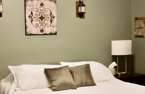 Main level is the office with desktop computer, dining room with seating for 8, full kitchen with kitchen table for 4, master bedroom with TV and its own bathroom with a separate jetted bathtub and separate standalone shower, second bedroom with TV, third bedroom, second full bathroom, living room, and half bath laundry room. The living room has a fireplace, TV with Playstation (DVDs, games, and you'll want to bring your own controllers), recliner, and comfy couches (sleep 2-3). Plenty of parking in the driveway with one or two cars able to be parked in the heated garage with fridge/freezer, ice machine, and coolers. Back patio area has seasonal outdoor furniture and seasonal firepit (mid March through hopefully NYE).
