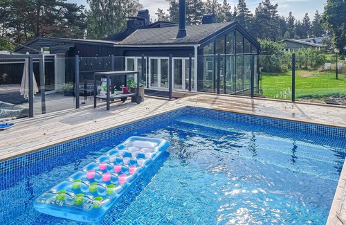 Amazing home in Köpmannebro is located in Mellerud O. Amazing home in Köpmannebro provides accommodation, featuring Parking, Pool, Balcony/Terrace, among other amenities. This House features Parking, Pool, Balcony/Terrace, to make your stay a comfortable one.