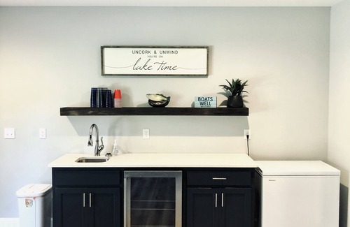 A lakeside cottage on Lake Keowee (completed August 2021). The home is located mid lake in Six Mile, SC conveniently located 13 miles to Clemson University. The lake front home is in a gated community, has 4 bedrooms, 3.5 baths and a additional 5th room with a bunk house that can comfortably sleep 12 people. (If you have a group that exceed that number please reach out directly to see if we can accommodate). It is situated in a large quiet cove with expansive water and mountain views. Enjoy your early morning kayaking or afternoon tubing without ever leaving the cove. The home itself is designed to have a modern farmhouse feel, made for entertaining, whether it be for families or for an adult getaway. The MAIN LEVEL has an open floor plan, a master bedroom with on-suite, one additional bedroom and a full bathroom for guests. In addition, the main level features a living room with gas burning fireplace where you can relax and watch your favorite college football game or favorite movie on the 65” TV. The wide-open floorplan makes it easy for entertaining. There is also additional sleeping space with a pull out sofa sleeper in living room. The back deck off the main level features a wood burning fireplace with rocking chairs for relaxation and smores at night. It also has a farmhouse raised table to enjoy your meals outside. Enjoy cooking and amazing lakeside views all at the same time. This farmhouse kitchen is amply supplied with all the pots, pans, utensils, and cooking supplies including crockpot, toasters and blender. There is a full sized washer and dryer for your use on the main level as well. On the terrace level there is a second living room, 2 bedrooms, a bunk house and 1.5 baths. In the living area, there are three couches, a 65” TV, a full wet bar with convenient access outside to the lake. Bedroom #3 has a queen bed and bedroom #4 has a king. One feature that all kids enjoy is the bunk house, where you will hear the kids giggling the entire vacation. There is a ping pong table for some friendly competition in the living area and corn hole boards for outside. Our family enjoys board games which are available for guests to enjoy. There is also a covered dock which can accommodate two additional boats for guests. The owners boat stay in the covered slip. In addition, there are two jet ski docks to accommodate two jet skis if guests want to rent or bring their own. Our cove is great for swimming and all water sports alike. The home comes with 2 Kayaks and 2 paddleboards to have fun on the water. The house is conveniently located 2 miles from Sunset Marina (Store, boat rental, launch/landing, fuel and supplies). 11 miles to Seneca and 13 miles to Clemson University. The home is pet free and smoke free. If you have a request to book for less than the minimum please reach out to us directly to see if we can accommodate.