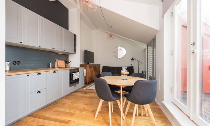 The apartment features a fully equipped kitchen, high speed free wi-fi and a balcony that fills the apartment with natural light and a stunning view of the Old Town.