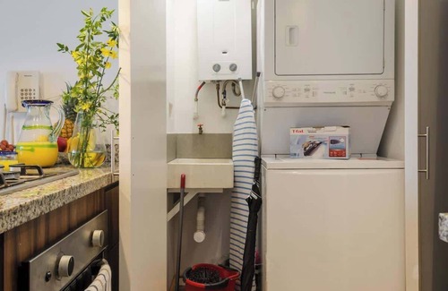 Additional amenities include a dedicated laundry area with a washer and dryer, as well as a large terrace where you can enjoy fresh air without leaving home. The dining area comfortably seats six people, making it perfect for family gatherings or dinners with friends.