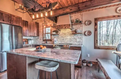 The whole house has been completely gutted and rebuilt, designed to offer the true VT experience. From the inviting living area, which features a wood burning fireplace, cathedral ceilings and wall to wall windows and sliders that invite the outdoor in, to the custom made kitchen with custom made hood (reclaimed wood from an old VT barn), natural stone backsplash, high end appliances and center island. The kitchen is equipped with everything you need to cook a nice dinner or breakfast. Open space between the living room, dining room (sitting up to 8 guests and with massive windows overlooking the mountains), and kitchen. The family room, on the same level, is cozy , has a pull out queen-size couch, and Smart TV. Much thought has been put into designing the half bath on this level, with a custom-made vanity (from an antique dresser) to custom-made light fixtures and bath fixtures. The first floor welcomes you with a spacious hallway, 2 bedrooms, and a large bathroom (with tub and double vanity). As you walk up the 3rd floor, the views are getting better and better from the primary suite, which boasts wall to wall windows. This top floor bedroom leads to a cozy lofted living area (with a pull out couch) and a primary bathroom with shower and custom-made fixtures.