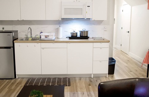Enjoy luxury redefined at this new property with contemporary furnishing that delivers on convenience. This quaint apartment is located in Halifax's sought-after McIntosh neighborhood and features one bedroom with a queen bed and a living room with a 55" HD smart TV with Disney+, Netflix, high-speed internet, a workstation, and a fully-equipped kitchenette, and a sleeper sofa. Our guests enjoy private bathrooms, laundry service, and free parking on premise.