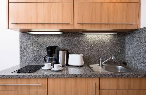 "Amsel (A410)", 1-room apartment 33 m2 on 4th floor, south facing position. Living/sleeping room with 1 french bed (140 cm, length 200 cm), satellite TV (flat screen). Exit to the balcony. Kitchenette in the entrance (2 ceramic glass hob hotplates, toaster, kettle, electric coffee machine). Shower/WC. Balcony furniture. Beautiful view of the countryside. Facilities: Internet (WiFi, free). Please note: non-smokers only. Maximum 1 pet/ dog allowed. Smoke alarm.